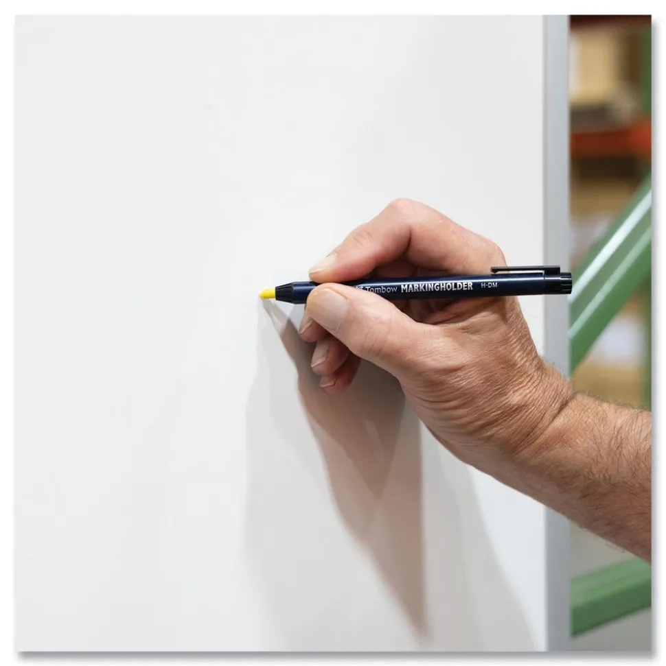 Versatile wax-based marking pencil for smooth, legible writing on a variety of surfaces. Use on both porous and nonporous surfaces, such as ceramics, stone, wood, glass, rubber, plastic, textiles, metal, coated paper, cardboard and more. Water-resistant and works great on both dark and transparent surfaces. Easily erase from nonporous surfaces by wiping with a damp cloth. Refillable pen-style body features rotate-to-advance system and durable clip, making it easy to use and store. No sharpening needed and pen-style design ensures entire marking pencil is used without any waste. Perfect for craftsmen and professional use in industrial environments. Economical to refill and reuse existing applicator.