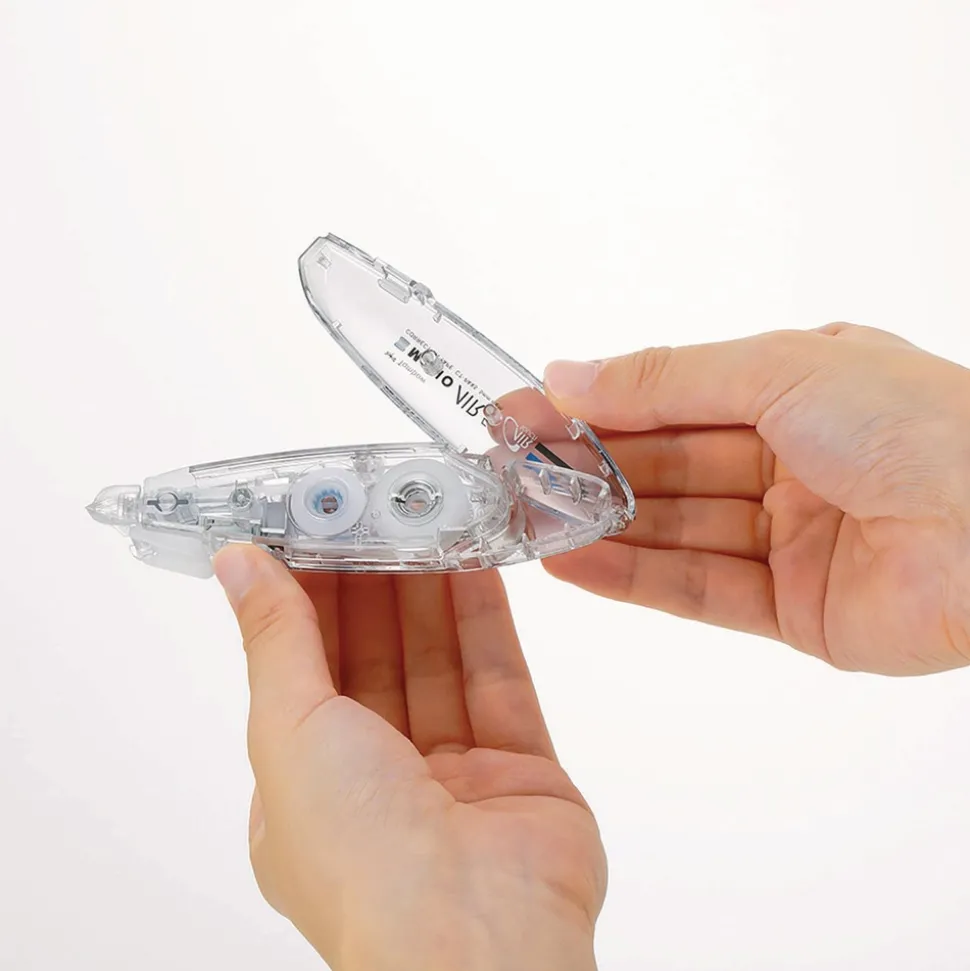 Experience effortlessly light application from start to finish with MONO Air Touch Refillable Correction Tape. Features Air Touch System that allows users to easily apply correction tape even with the lightest touch. Pivoting tape head and unique tape lock system that automatically stops tape and provides smooth, skip-free application. Convenient slender pen-style applicator with protective tip cover that prevents damage during storage. Write over dry correction tape immediately after application. Excellent tape adhesion to paper enables clean copying and easy rewriting. Easy to refill with snap-in cartridge.