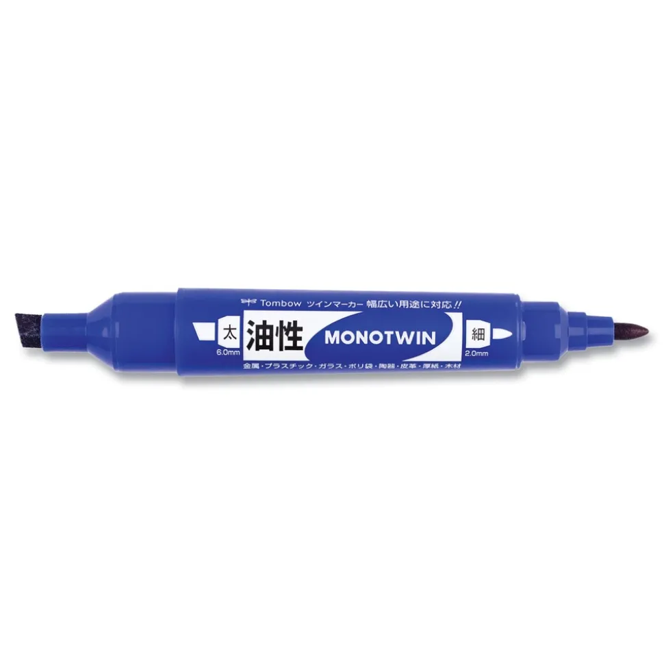 Tombow 56648 Mono Twin Fine/Broad Tips Bold Permanent Marker – Blue (10/Box)