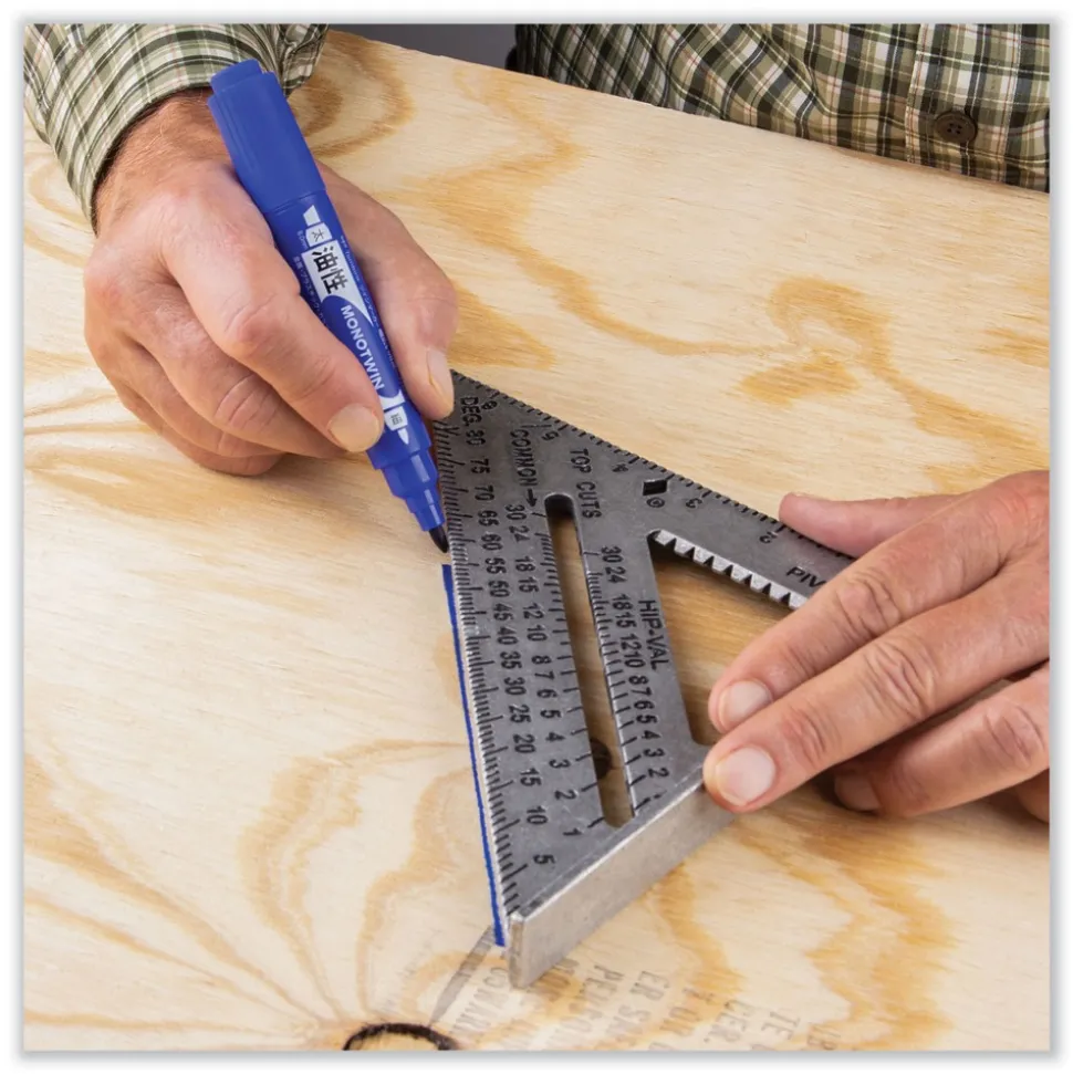 Permanent marker with two durable tips-wide chisel tip and fine bullet tip. Works on a wide range of materials, including paper, metal, plastic, glass, vinyl, porcelain, leather, and wood. Two tips provide options for making thin or thick marks of smear-proof oil-based permanent ink. Durable tips made of polyester fiber (chisel tip) and acrylic fiber (fine tip) stay fresh and firm even after heavy use. Great for marking on shipping labels, boxes, pallets, signs, and more. Anti-roll chisel tip cap prevents marker from rolling off work surface. Water resistant. 6 mm chisel tip and 2 mm fine tip.