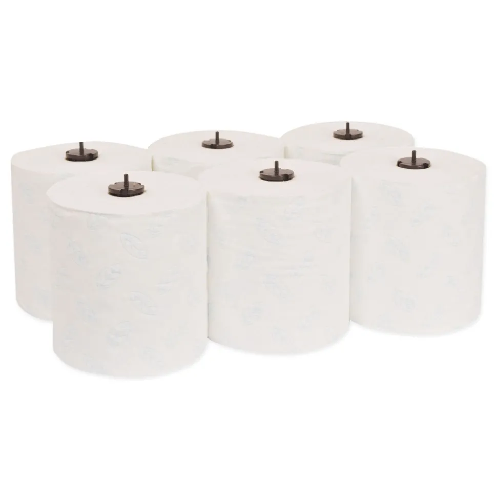 Tork Premium Matic Hand Towel Roll is a quick-absorbing, thicker 2-ply paper roll towel with improved softness and strength that feels more like cloth. Designed specifically for the Tork Elevation Matic Hand Towel Roll Dispensers, this high-end Tork Premium Extra Soft Hand Towel offers a truly best-in-class product for no-touch, hygienic dispensing systems. Ideal for Class-A office buildings and upscale dining facilities. This towel saves time and controls consumption by one-at-a-time sheet dispensing. With high-performance towels customers use fewer, resulting in greater cost savings. Long-lasting rolls minimize maintenance costs while maximizing restroom service. Available in an Easy Handling Carry Box.
