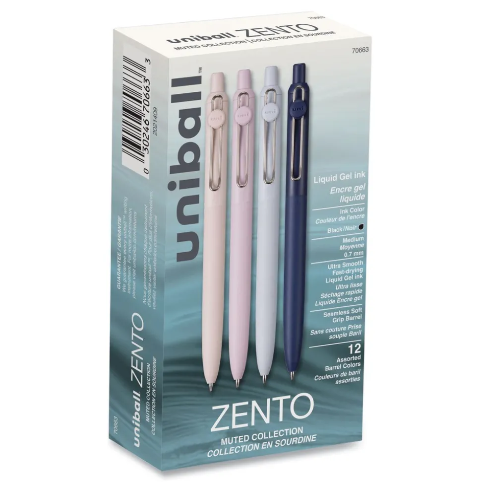 Zento is a sublime fusion of writing excellence and mindful living. With uniball Zento, every stroke on paper becomes a journey of tranquility and self-discovery. The uniball Zento features a medium 0.7 mm point and liquid gel ink that dries quickly while providing a super smooth flow. The uniball Zento collection showcases a thoughtfully designed, minimalist barrel with a seamless soft grip made from recycled material. Each barrel color is carefully curated to evoke a sense of insightfulness and reflective thought. In addition, the functional and strong spring-loaded wire clip opens wide to effortlessly attach to any pocket, document, folder, or notebook. Experience a super-smooth quick-dry writing flow that feels like a gentle meditation for your hand, fostering mindfulness with every word.