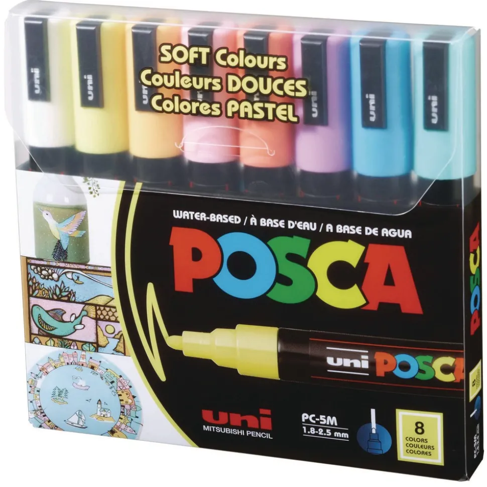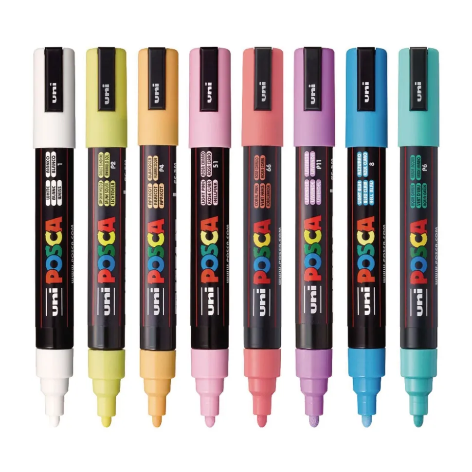 uni-ball PC5M8CSOFTCOLORS Medium Bullet Tip 1.8 mm/2.5 mm Water-Based Paint Markers – Assorted Colors (8/Set)