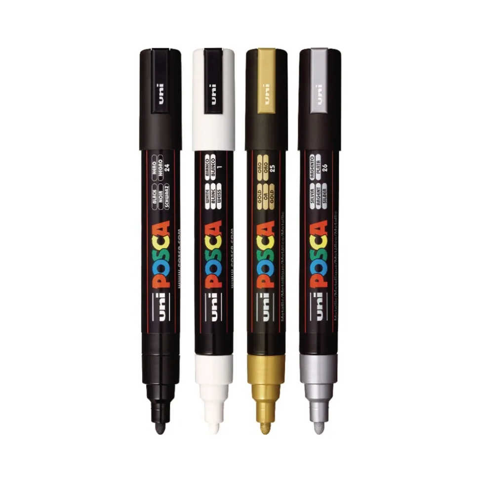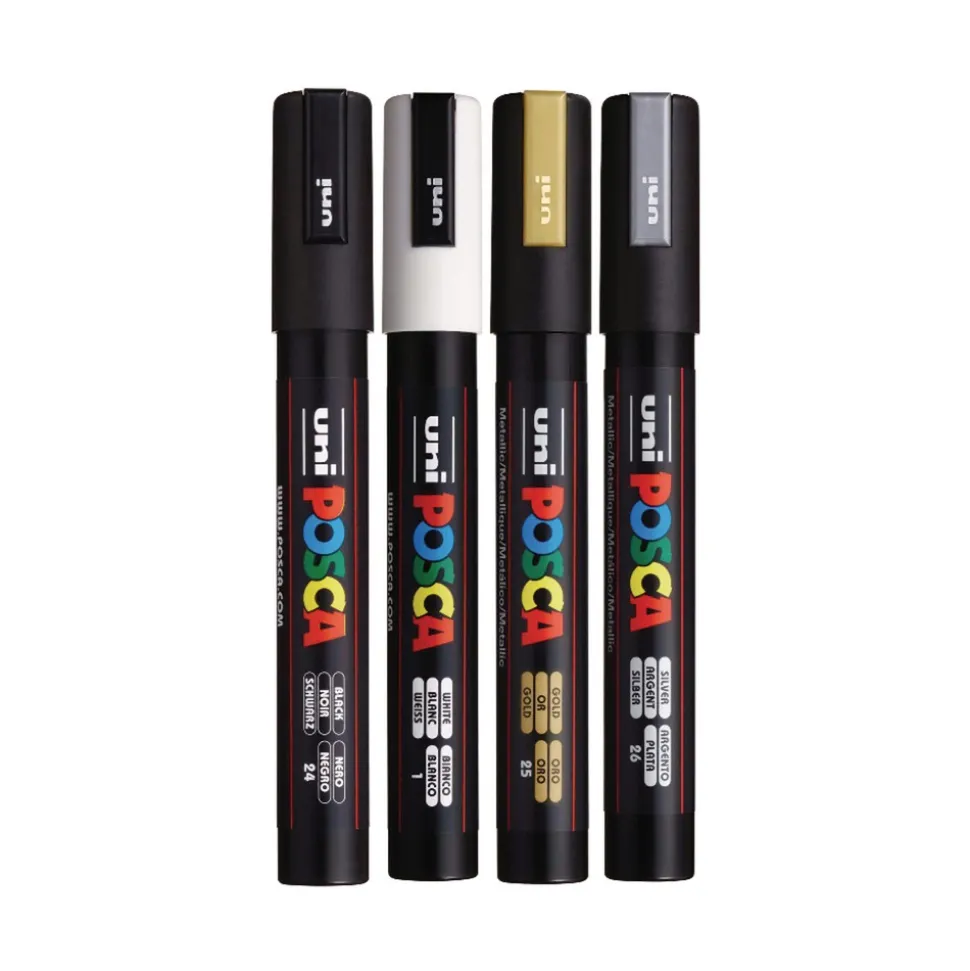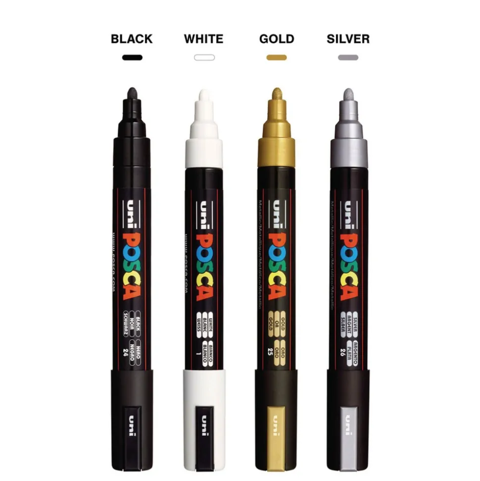 uni-ball PC5M4C Medium Bullet Tip Water-Based Paint Markers – Assorted Colors (4/Set)