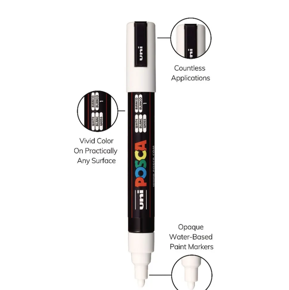 POSCA marker can be used on almost any surface you can dream up: paper, glass, cardboard, wood, porcelain, metal, textiles, ceramics, plastic and much more. The felt bullet tip marker is versatile, which allows you to produce neat and precise lines. The alcohol- and solvent-free opaque paint covers surfaces well, is blendable, dries quickly and can be layered when dry. Ideal for beginners and professionals alike, this marker is a fluid and fun choice for retail windows, car lots, art, craft or decor. The tips can be rinsed with water to keep marker intact, allowing you to blend without fear of ruining your marker.