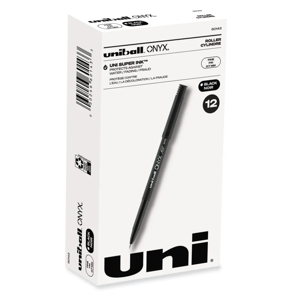 uni-ball 60143 ONYX Fine 0.7 mm Roller Ball Pen – Black Ink/Black Barrel (1-Dozen)