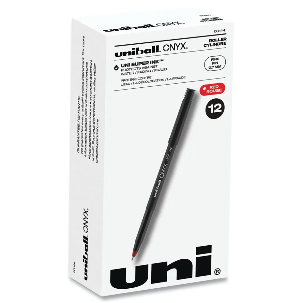 uni-ball 60144 ONYX Fine 0.7 mm Roller Ball Pen – Black/Red Barrel (1-Dozen)