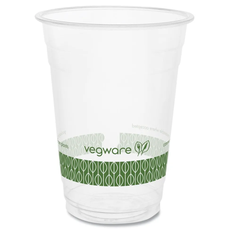 Vegware R500Y-G 16 oz. 96-Series Compostable Cold Cup – Clear/Green (1000/Carton)