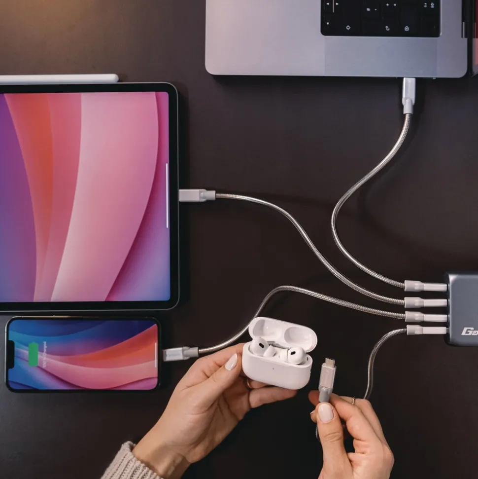 Supports charging of up to four devices simultaneously with a maximum total output of 140 W