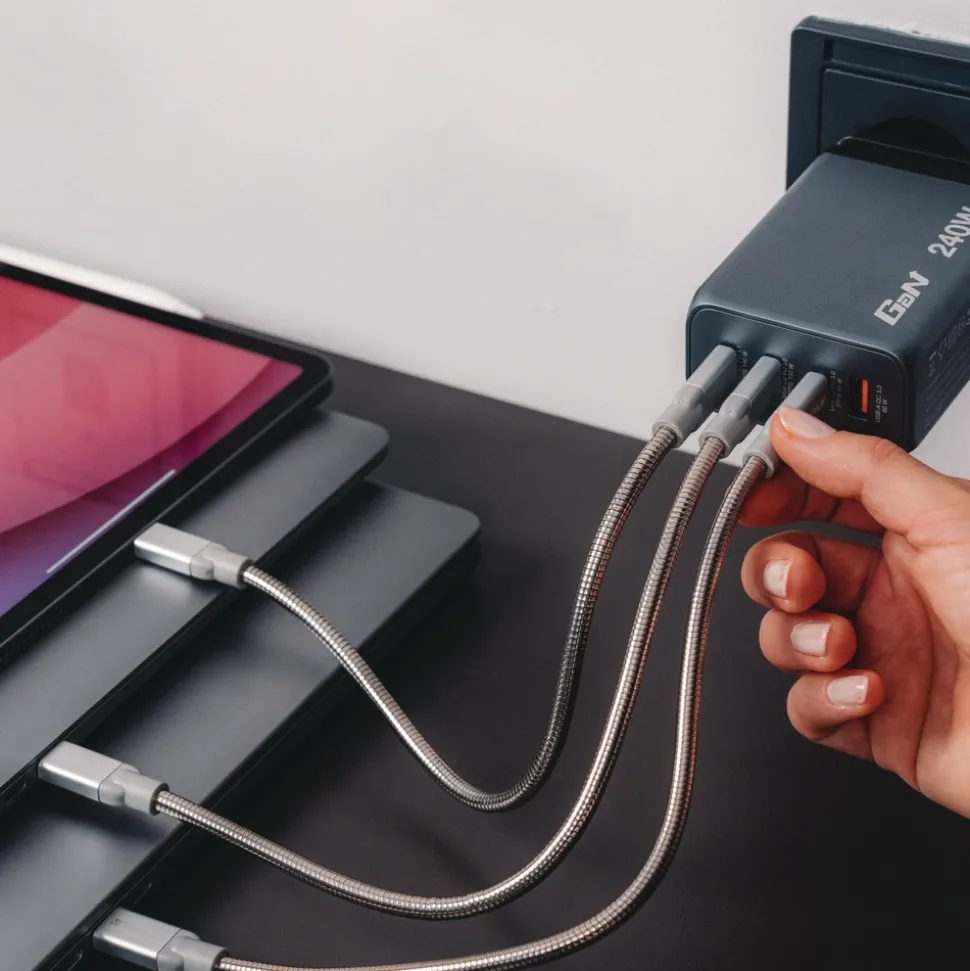 Supports charging of up to four devices simultaneously with a maximum total output of 240 W.