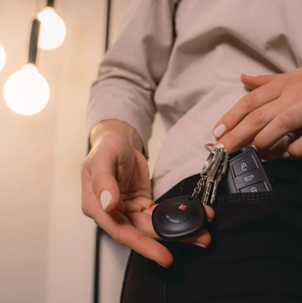 Our tracking device works exclusively with Apple’s Find My App. Simply attach MyFinder to the item you want to track and use the Apple Find My App to locate it. When you are in close range of the Apple Find My ecosystem, you can locate your lost item by selecting “Play Sound” in the app, allowing you to follow the beep to your item. You can also select your item in the app and locate it on the map an anonymous, encrypted process to protect your privacy. With the app’s Lost Mode, you can also enter your contact details in the event that your missing item is located by someone in the Apple Find My network. With smart notifications enabled on the device by default, you will receive an alert on your phone when your MyFinder is out of Bluetooth range. Verbatim’s MyFinder is water-resistant, dustproof, and has up to 12 months battery power.