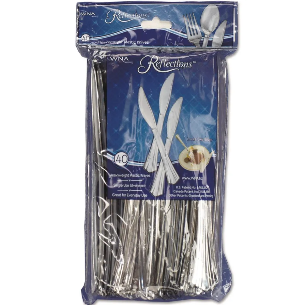 WNA WNA REF320KN Reflections Heavyweight Plastic Utensils Knife – Silver (320/Carton)