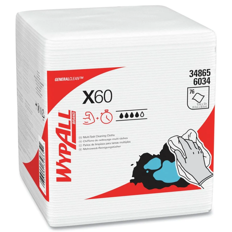 WypAll 34865 X60 12.5 in. x 13 in. 1/4 Fold General Clean Cloths – White (76/Box, 12 Boxes/Carton)